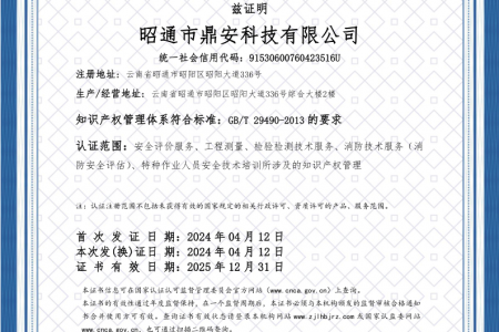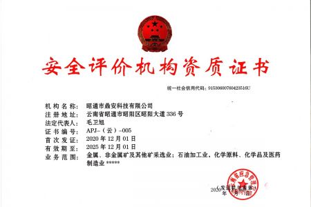 2003年11月10日,昭通市鼎安科技有限公司成立,初始主要從事第三方安全工程技術(shù)服務(wù),經(jīng)多年運營,發(fā)展為多專業(yè)綜合科技平臺,為社會提供多種專業(yè)技術(shù)服務(wù)工作。 現(xiàn)公司注冊資金為1200萬元,公司法定代表人:毛衛(wèi)旭。公司主要業(yè)務(wù):安全評價、安全標(biāo)準(zhǔn)化評審、安全工程技術(shù)服務(wù);環(huán)境監(jiān)測、職業(yè)衛(wèi)生檢測、檢驗;法律訴訟及非訴訟服務(wù);司法鑒定、固定資產(chǎn)投資項目節(jié)能服務(wù);工程咨詢;工程測量測繪;安全教育培訓(xùn)等。是安全生產(chǎn)服務(wù)、安全教育培訓(xùn)機(jī)構(gòu),也是環(huán)境監(jiān)測和職業(yè)衛(wèi)生服務(wù)機(jī)構(gòu),同時也是綜合的檢測檢驗、綜合科技平臺服務(wù)機(jī)構(gòu)。多年來為公、檢、法、司、軍、警、海關(guān)、仲裁、安監(jiān)、工礦商貿(mào)企業(yè)、社會團(tuán)體及個人提供多專業(yè)技術(shù)服務(wù)。